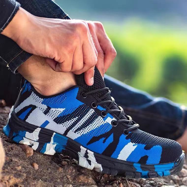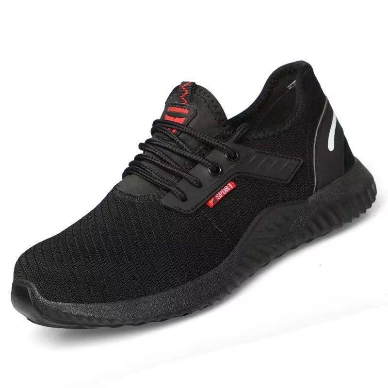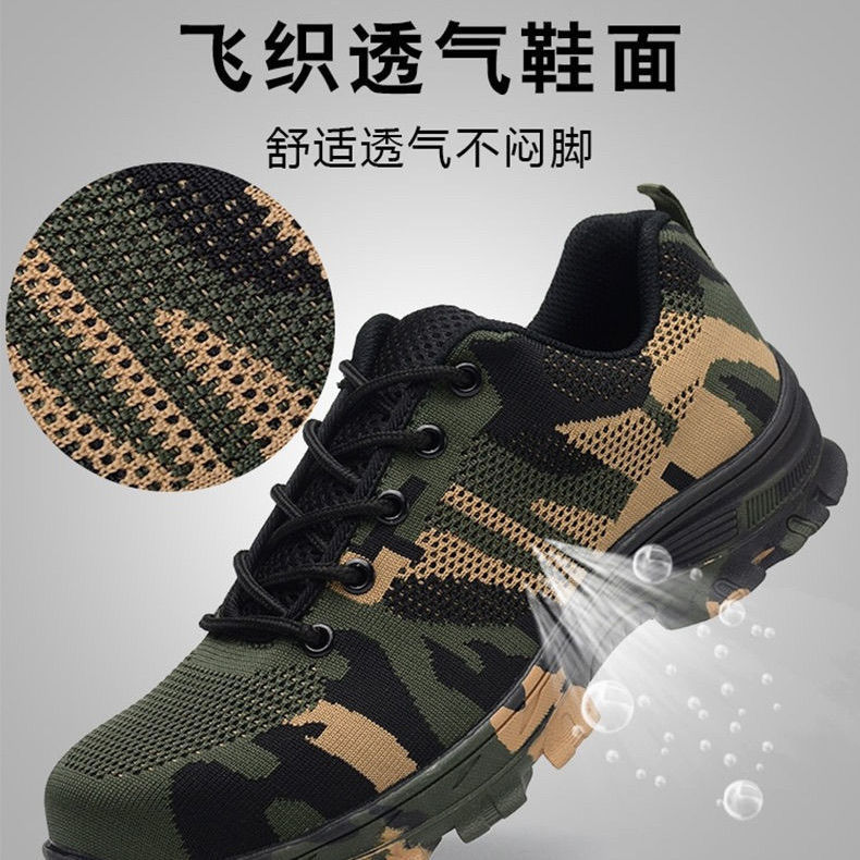 남성과 여성을위한 안전 신발 충돌 방지 및 피어싱 방지 비행 짠 쇠고기 밑창 안전 신발 통기성 경량 미끄럼 방지 솔리드 작업 신발