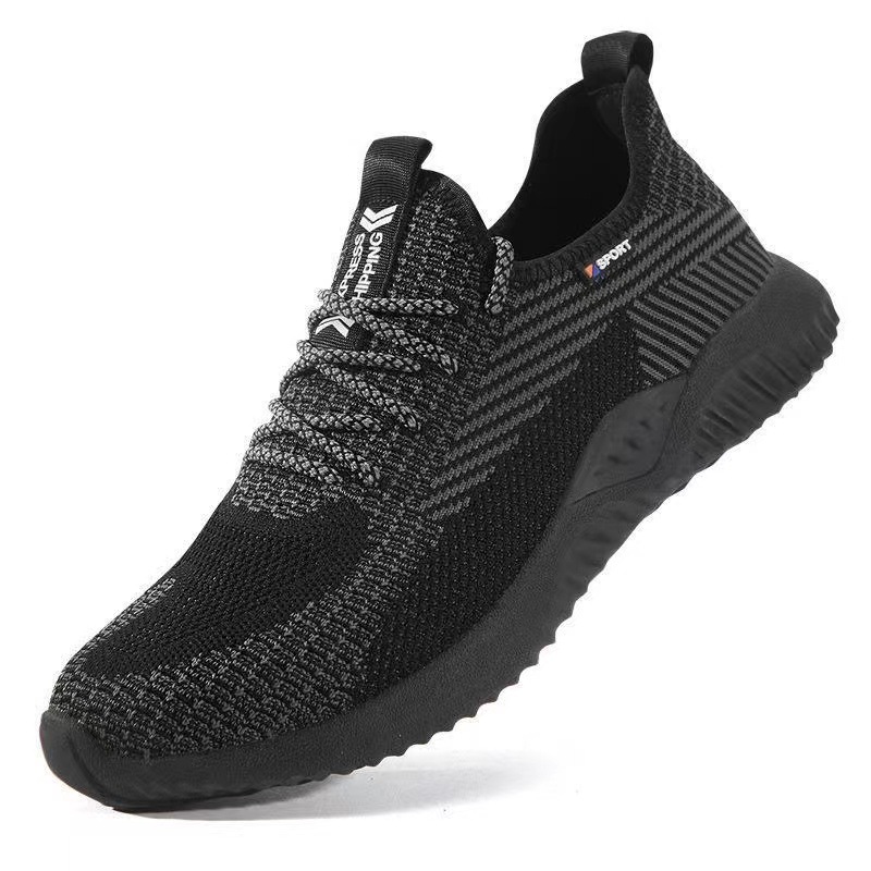 남성과 여성을위한 안전 신발 충돌 방지 및 피어싱 방지 비행 짠 쇠고기 밑창 안전 신발 통기성 경량 미끄럼 방지 솔리드 작업 신발스토어 가기