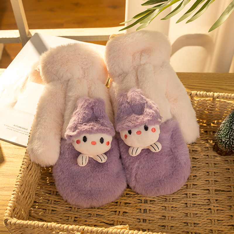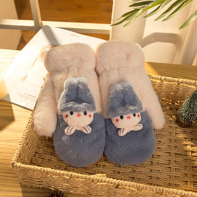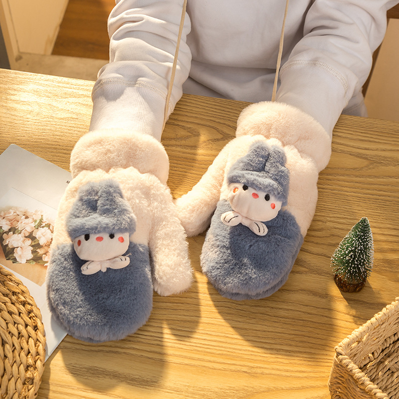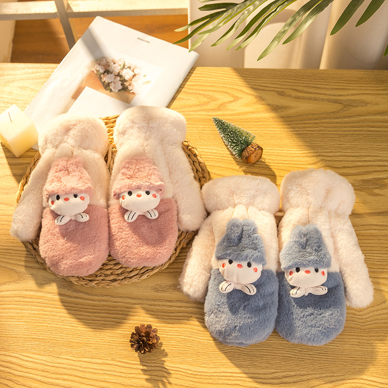 여성용 장갑 겨울 귀여운 한국 스타일 학생 사이클링 운전 따뜻한 기모 두꺼운 방풍 전체 손가락 장갑 겨울 c스토어 가기
