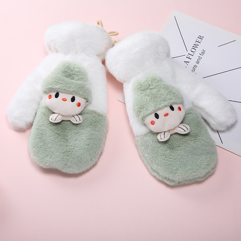 여성용 장갑 겨울 귀여운 한국 스타일 학생 사이클링 운전 따뜻한 기모 두꺼운 방풍 전체 손가락 장갑 겨울 c