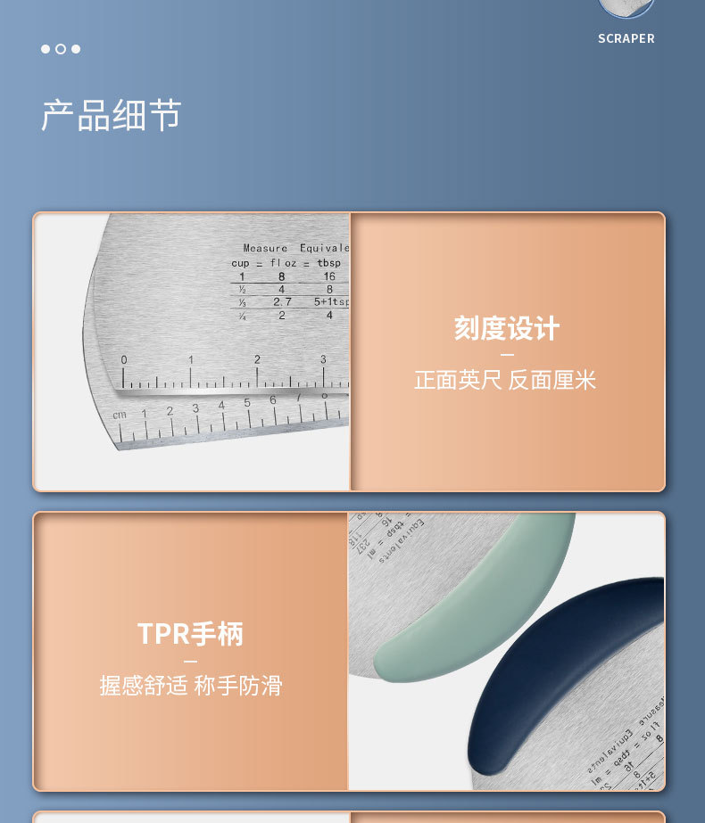 • 다크 블루 스테인레스 스틸 스크레이퍼