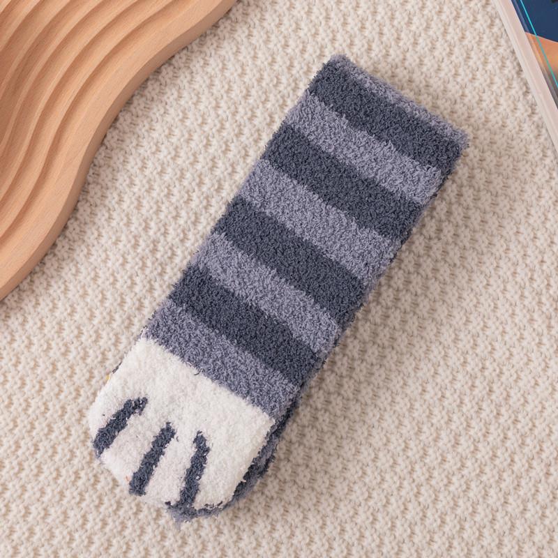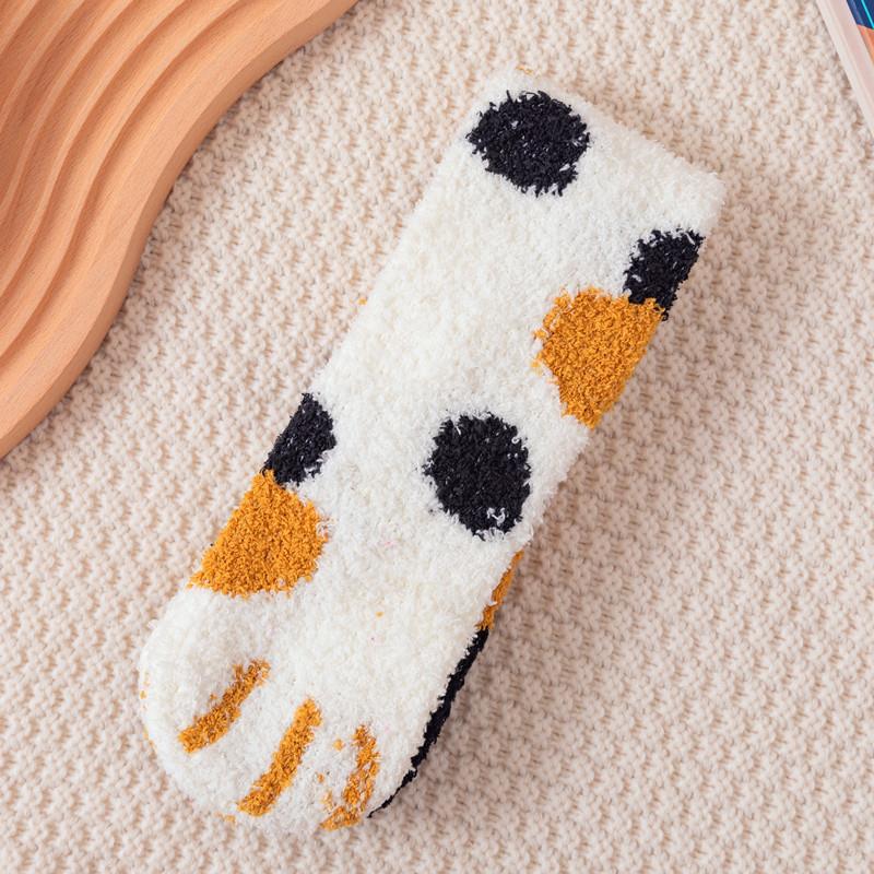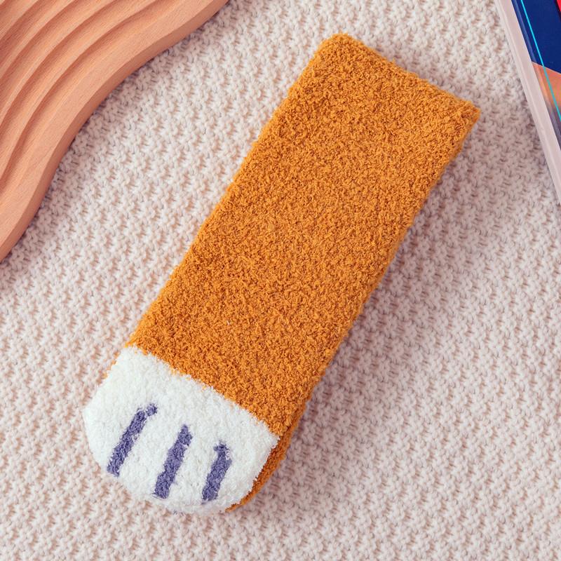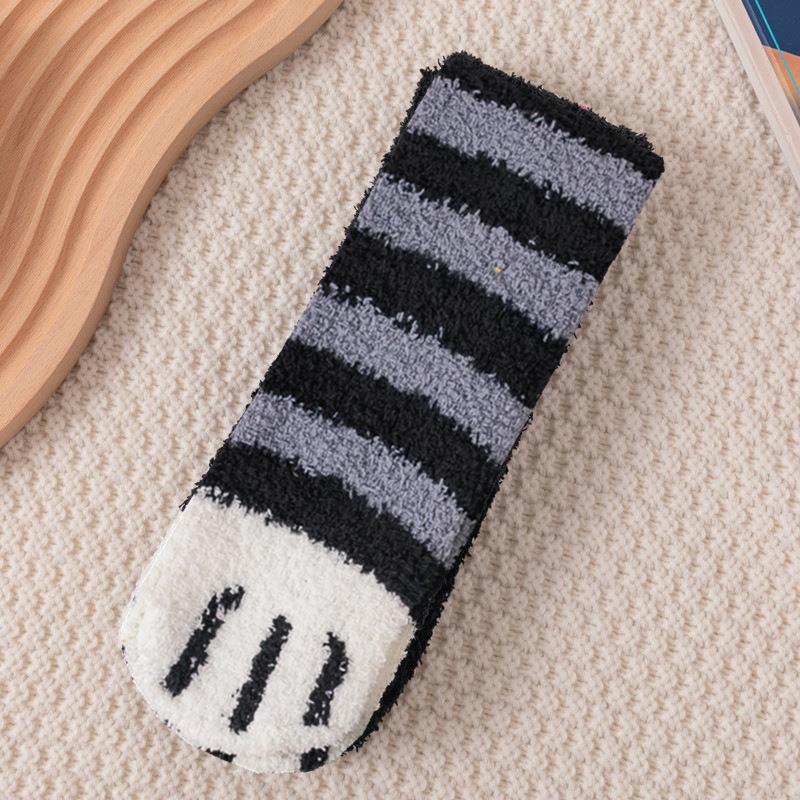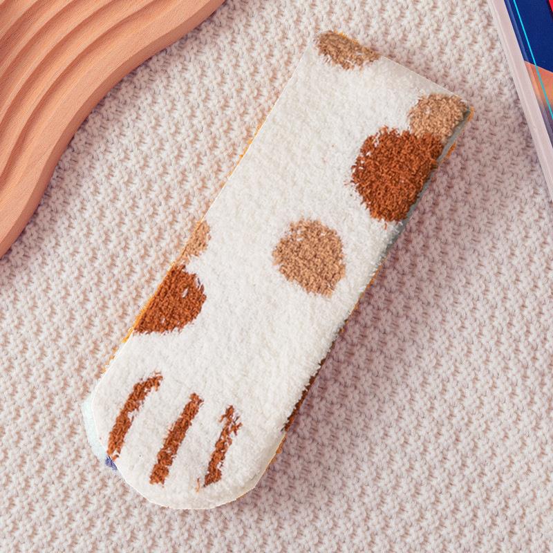가을과 겨울 새로운 고양이 발자국 송아지 양말 여성 산호 양털 두껍게 따뜻한 바닥 수면 양말스토어 가기
