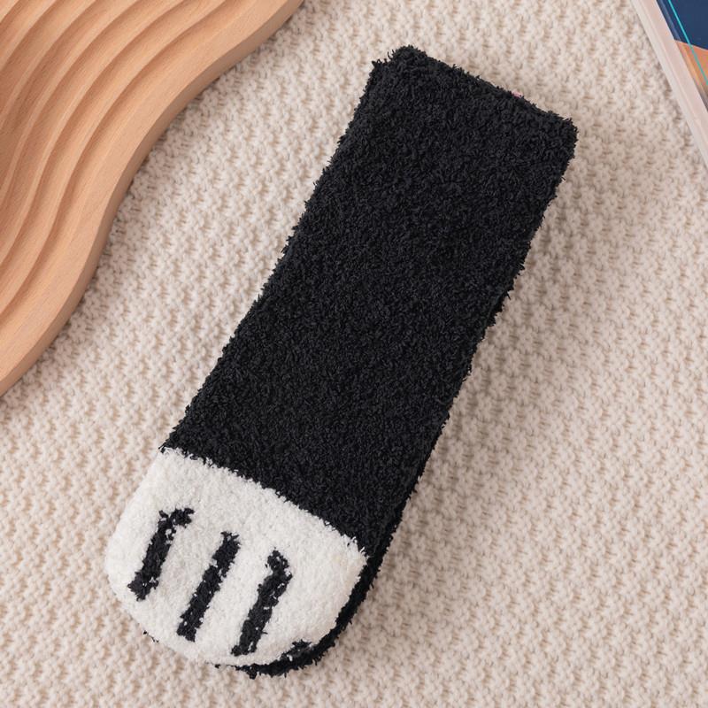 가을과 겨울 새로운 고양이 발자국 송아지 양말 여성 산호 양털 두껍게 따뜻한 바닥 수면 양말