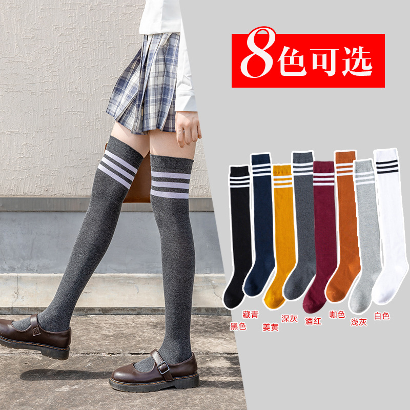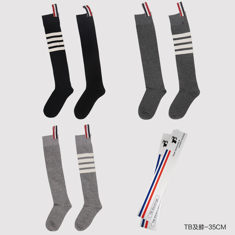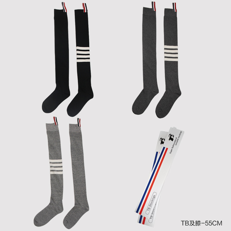 순수한 TB 양말 여성의 가을과 겨울 JK 코튼 그물 레드 INS 밀물 긴 튜브 위에 무릎 회색 4 바 줄무늬 남성 종아리 양말