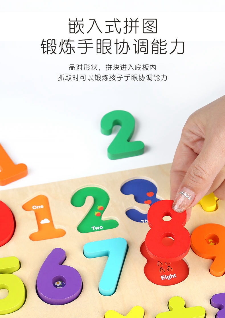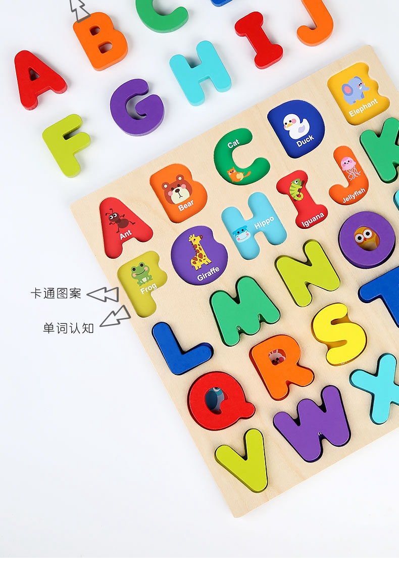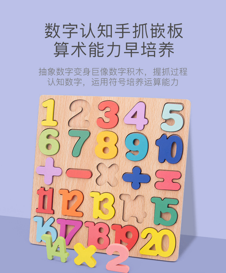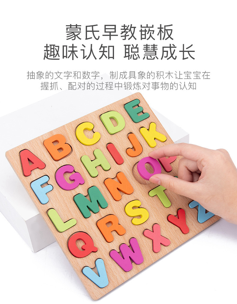 알파벳 퍼즐 숫자 모양 블록 품질 일치하는 손 파악 퍼즐 0-3 세 어린이 교육 장난감 선물 도매