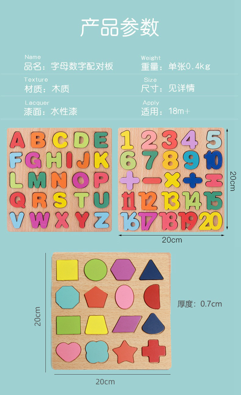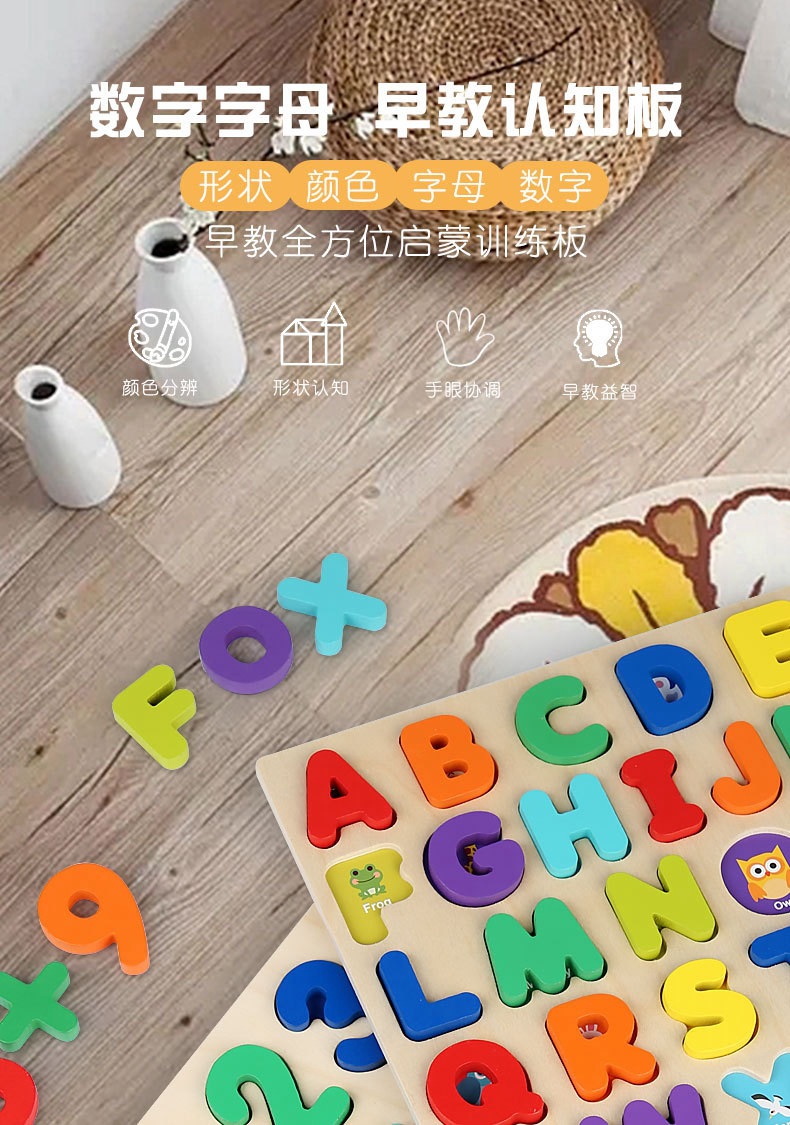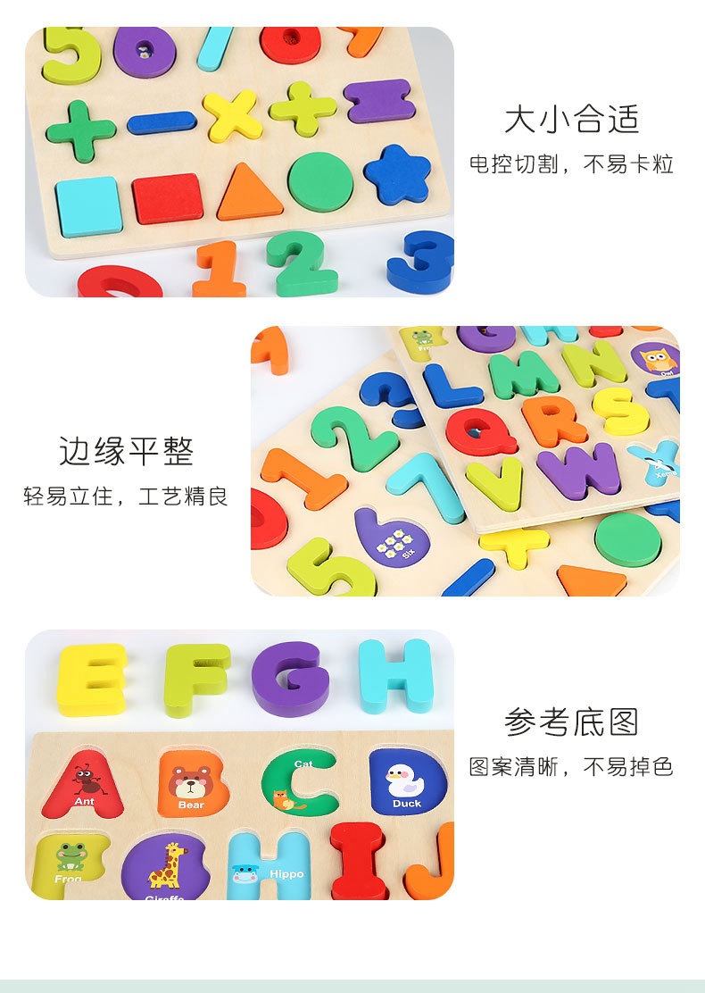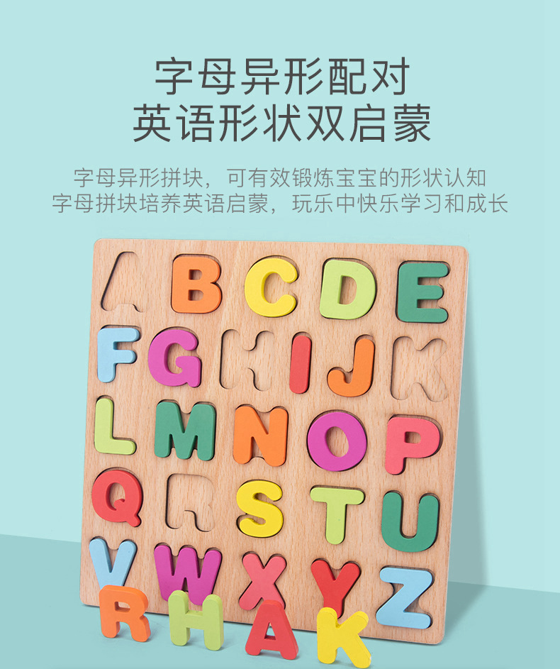 알파벳 퍼즐 숫자 모양 블록 품질 일치하는 손 파악 퍼즐 0-3 세 어린이 교육 장난감 선물 도매