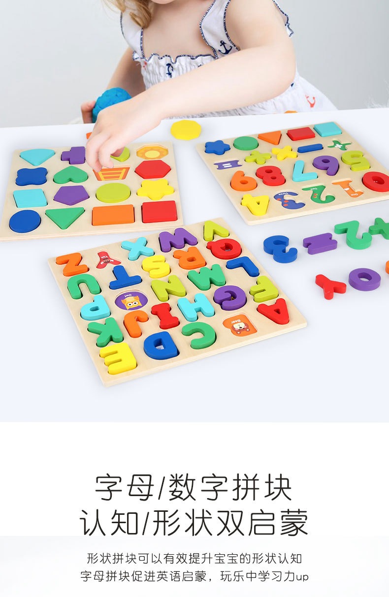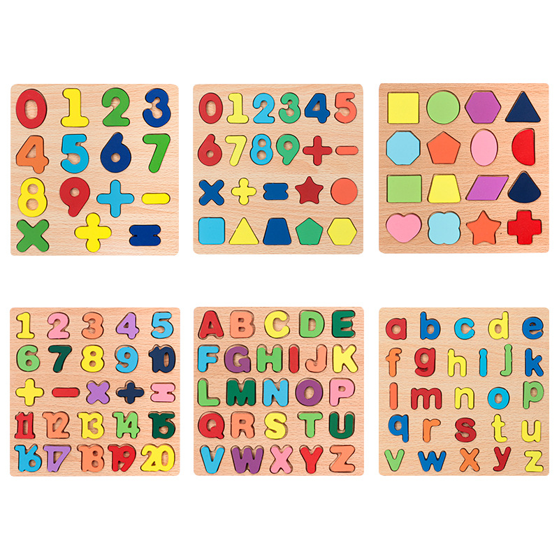 알파벳 퍼즐 숫자 모양 블록 품질 일치하는 손 파악 퍼즐 0-3 세 어린이 교육 장난감 선물 도매스토어 가기