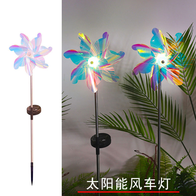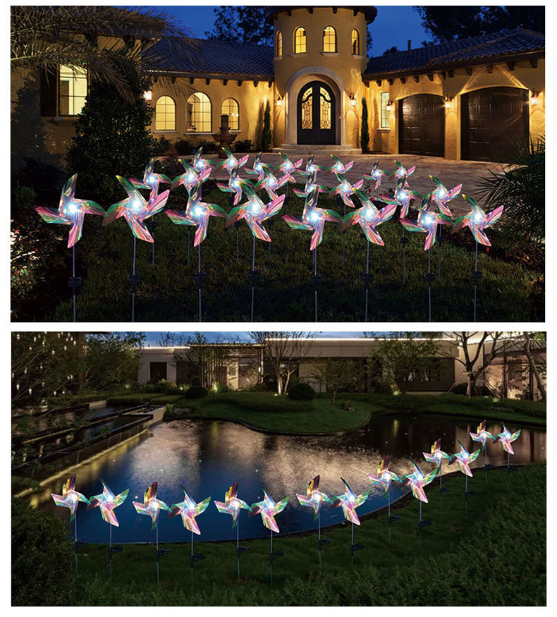 국경 간 새로운 바람이 부는 회전 태양 풍차 바닥 램프 led 야외 정원 장식 잔디 램프 조경 램프