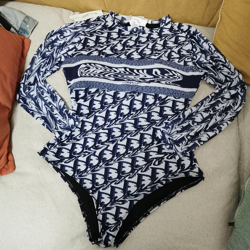 대외 무역 수영복 유럽과 미국의 패션 브랜드 D 가족 D 편지 인쇄 메쉬 긴 소매 인터넷 인기 온천 휴가 수영복 여성