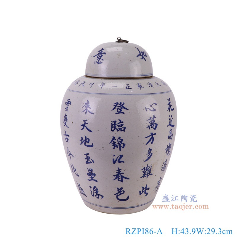 Jingdezhen 도자기 순수 화이트 장군 Jar Baozhu 제단 골동품 파란색과 흰색 글쓰기 커버 항아리 꽃병 홈 장식 장식품