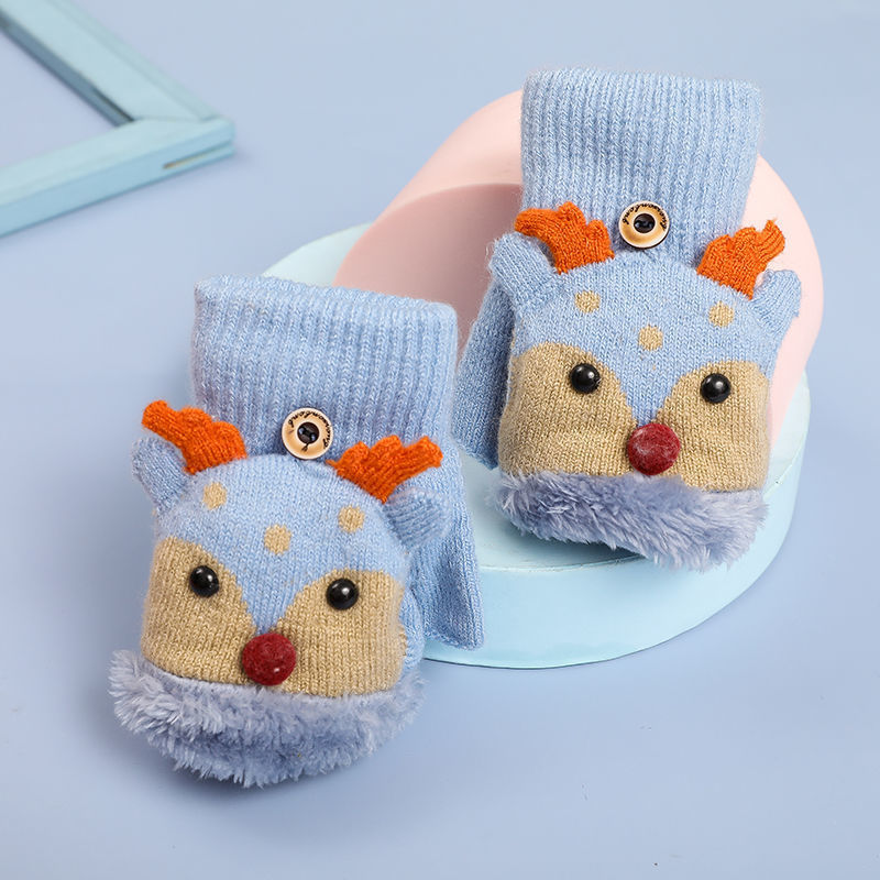 한국 스타일 어린이 쓰기 장갑 초등 학생 반 손가락 플립 커버 따뜻한 귀여운 만화 작은 엘크 기모 두꺼운 가을과 겨울스토어 가기