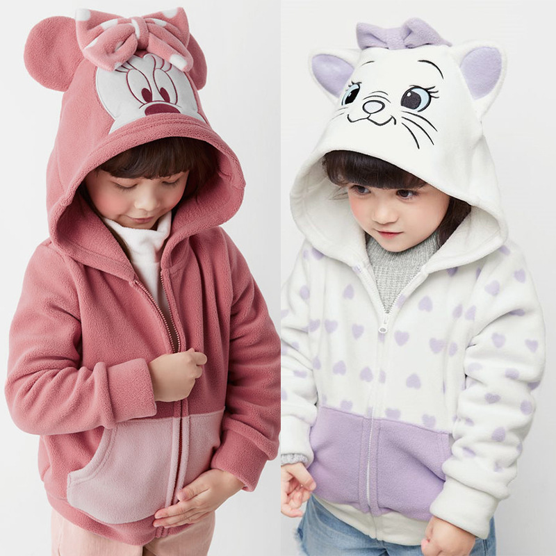 어린이 양털 코트 가을과 겨울 소년과 소녀 후드 탑 따뜻한 지퍼 카디건 아기의 만화 탑 옷