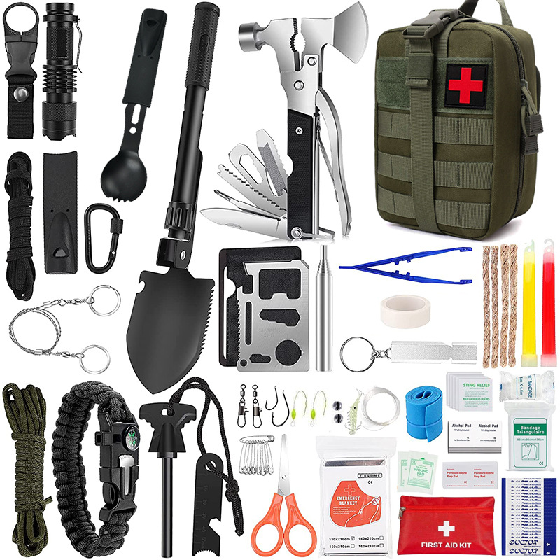产品用途:现在地震、台风、海啸、龙卷风、洪水等自然灾害的频率不断增长,在自然灾害, 停水停电,食品短缺,通信中断,交通中断,救援人员无法第一时间进入救助灾区,在救援人员和救援物资没到达之前,我们只能依靠自己第一时间展开自救、互救。这就需要有一定的工具,我们推出的一些列自求应急求生套装,每款产品功能多,携带方便,放在家里,户外野营探险,都能够满足求生过程中遇到的各种不同的需求。