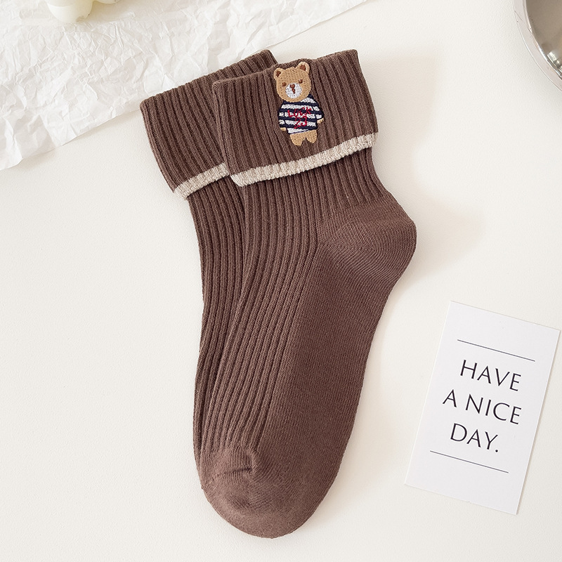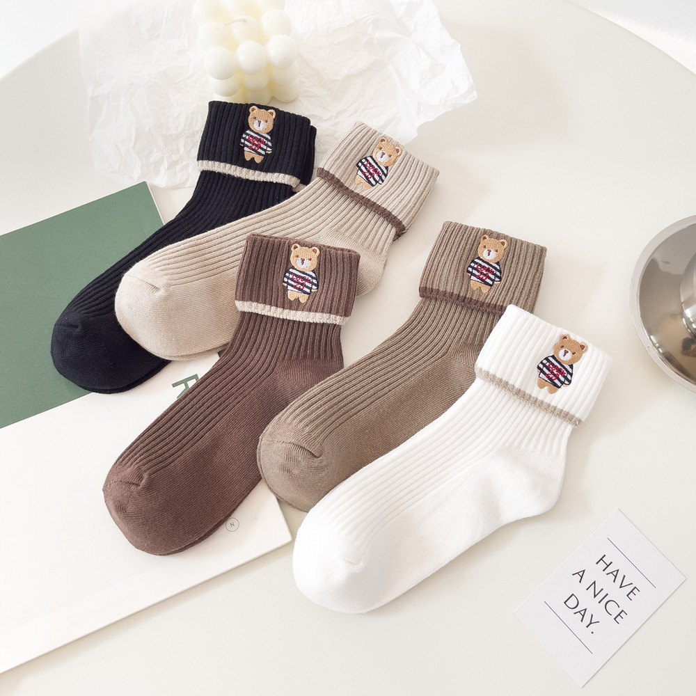 곰 양말 여성 가을과 겨울 새로운 파일 양말 여성용 빗질면 이중 바늘 회전 골동품 색 양말 도매