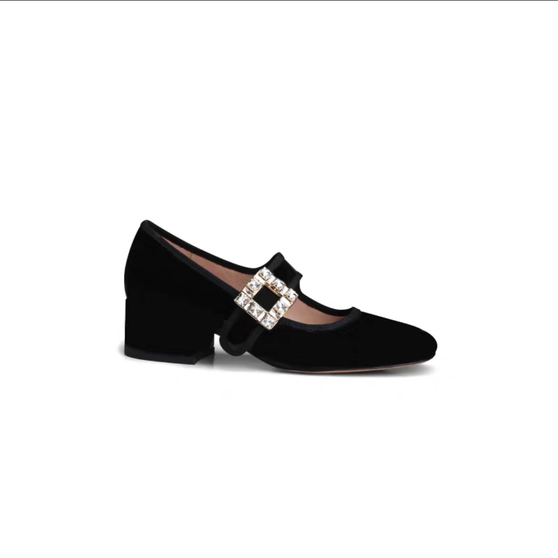 재고 있음 빈티지 프렌치 스타일 출퇴근용 봄 여름용 큐빅 장식 사각 버클 스트랩 플랫 굽 두꺼운 굽 메리제인 여성용 신발