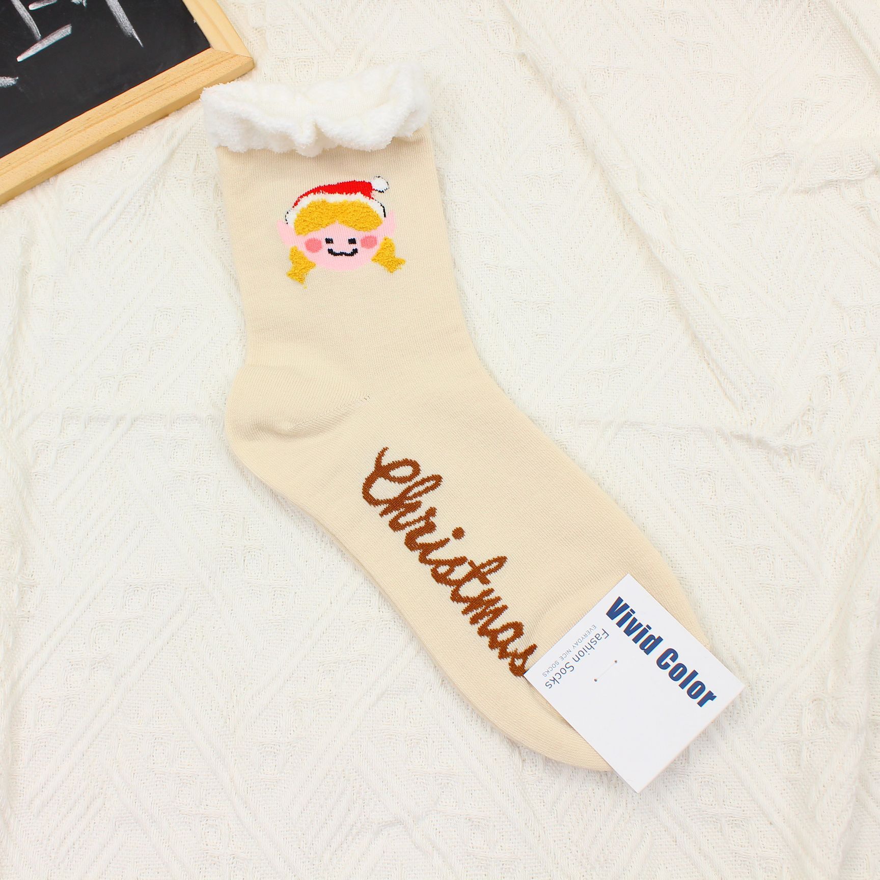 겨울 새 크리스마스 양말 한국 동대문 여자 양말 플러시 가장자리 여자 양말의 한국어 버전 도매스토어 가기