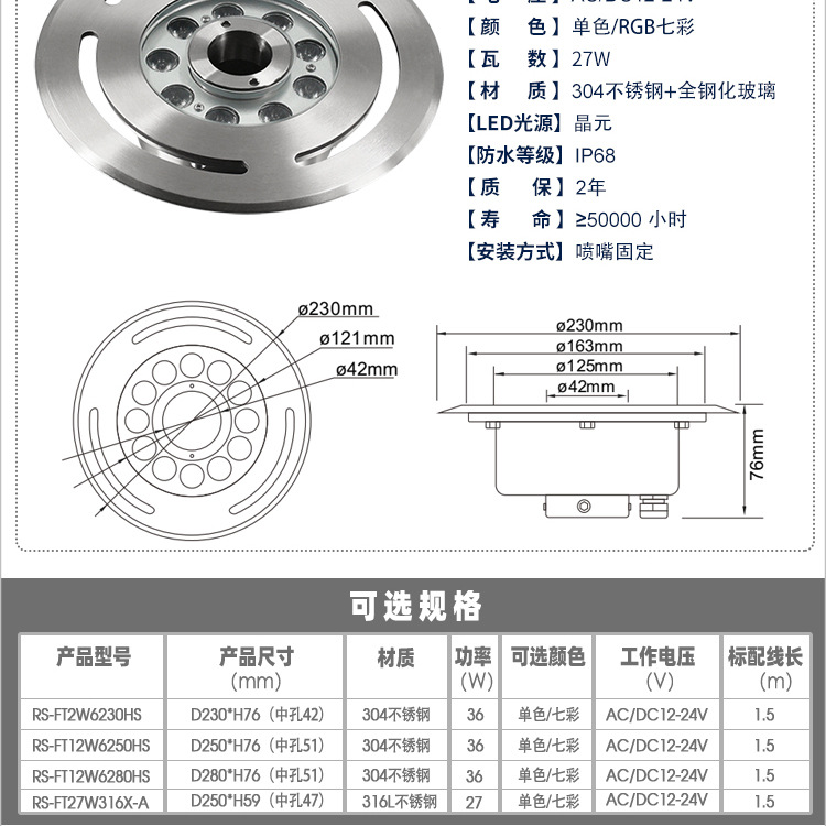 Led Yongquan 램프 정원 수중 물고기 연못 조경 엔지니어링 구멍 매장 램프 스테인레스 스틸 건조 분수 램프 사용자 정의스토어 가기