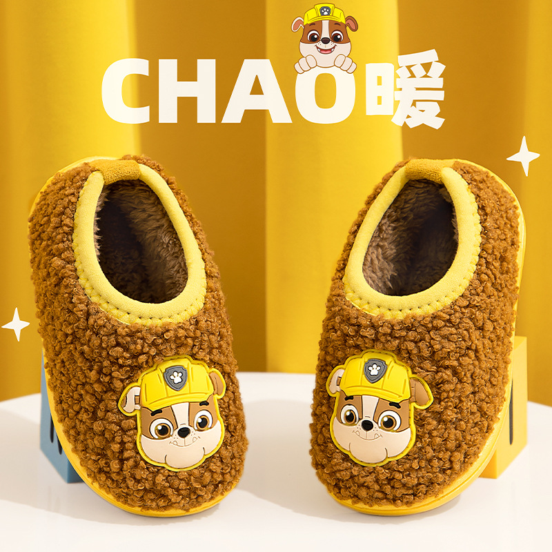 왕 왕 팀 면화 슬리퍼 따뜻한 실내 가정 어린이 면화 신발 미끄럼 방지 푹신한 슬리퍼 겨울 어린이 아기 가방