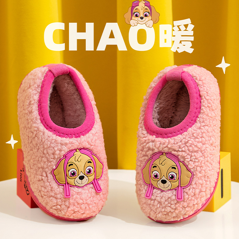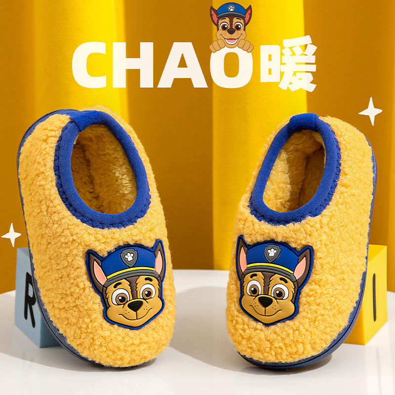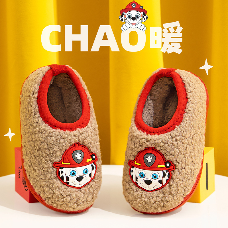 왕 왕 팀 면화 슬리퍼 따뜻한 실내 가정 어린이 면화 신발 미끄럼 방지 푹신한 슬리퍼 겨울 어린이 아기 가방스토어 가기