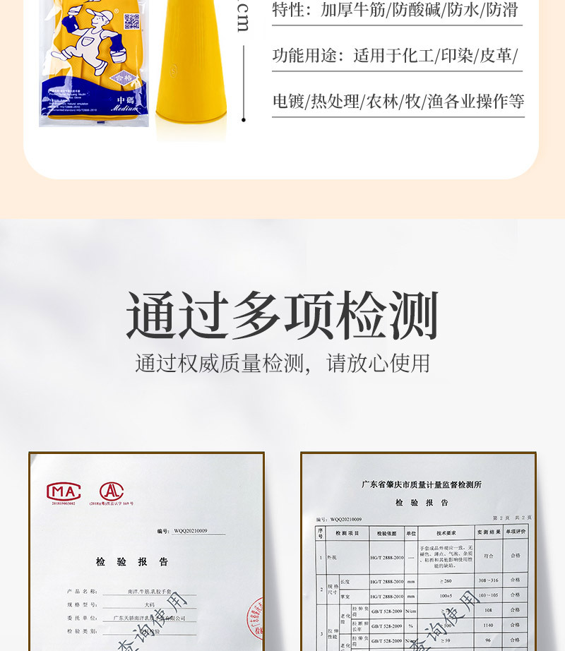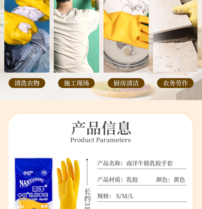 난양 쇠고기 힘줄 라텍스 장갑 두꺼운 고무 장갑 가정용 주방 식기 세척 자동차 세척 장갑 산성 및 알칼리 저항 도매