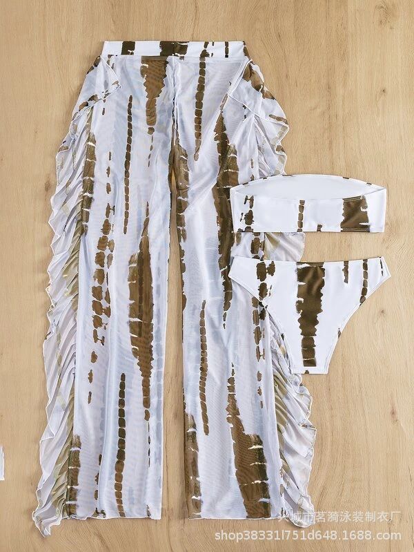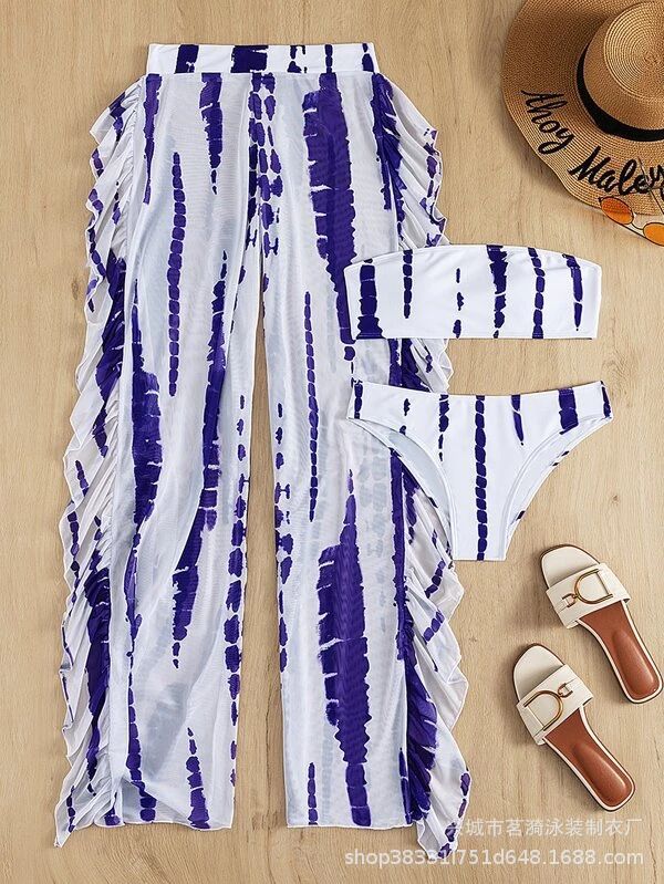 Mingyi 새로운 유럽과 미국 섹시한 패션 멀티 컬러 인쇄 분할 바지 비키니 비키니 쓰리 피스 여성 수영복