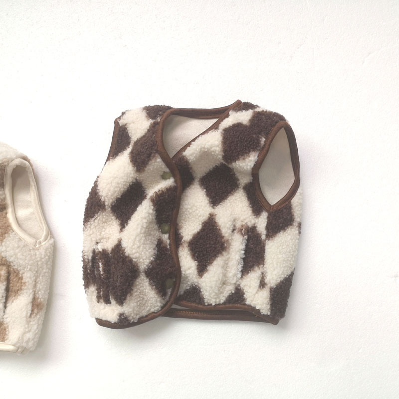 한국식 아기 조끼 겨울 남성과 여성의 아기 캐주얼 마름모꼴 기모 두꺼운 따뜻한 민소매 조끼