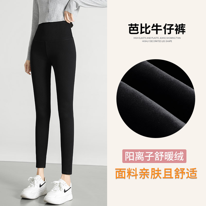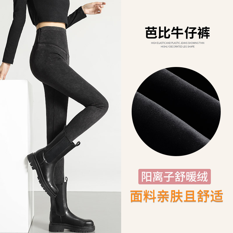 플리스 안감 하이웨이스트 데님 스타일 가을 겨울용 여성 레깅스, 복부 보정 및 힙업 효과, 큰 사이즈, 슬림핏, 샤크팬츠스토어 가기