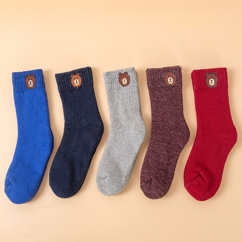 겨울 기모 두꺼운 어린이 양말 따뜻한 테리 양말 바닥 양말 귀여운 만화 중간 수건 양말 아기 양말