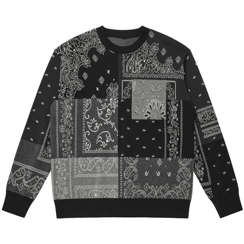 패션 트렌드 남성 가을과 겨울 새로운 라운드 넥 스웨터 캐슈 플라워 자카드 느슨한 울 풀오버 B1EBB1150