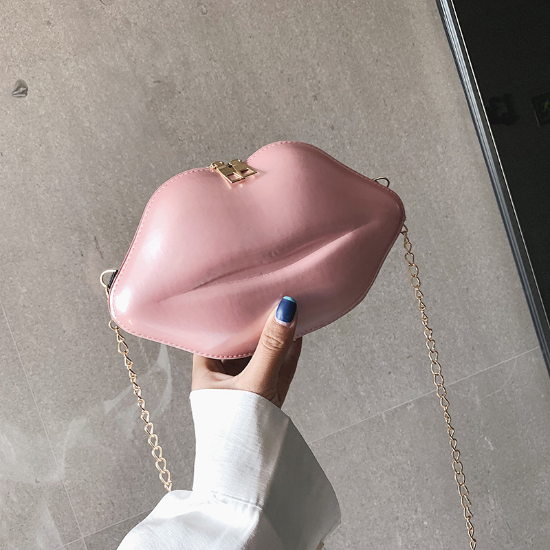 2020 새로운 스타일 독특한 입술 귀여운 여성 가방 세련된 체인 숄더백 크로스 바디 백 한국 스타일 창조적 인 소녀의 작은 가방