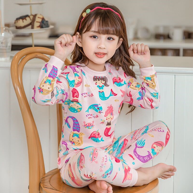 소녀의 속옷 세트 어린이의 봄과 가을 만화 인어 잠옷 가정 옷 면 어린 소녀 따뜻한 가을 옷과 바지스토어 가기