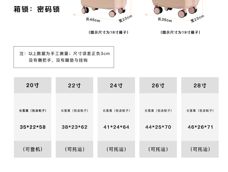 미니 수하물 경량 소형 탑승 트롤리 케이스 19 여성용 암호 여행 케이스 스몰 사이즈 남성용 18 인치 신선한 스타일