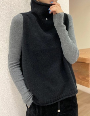캐시미어 스웨터 조끼 여성의 가을과 겨울 새로운 하이 칼라 버튼 민소매 탑 느슨한 슬리밍 울 니트 조끼스토어 가기