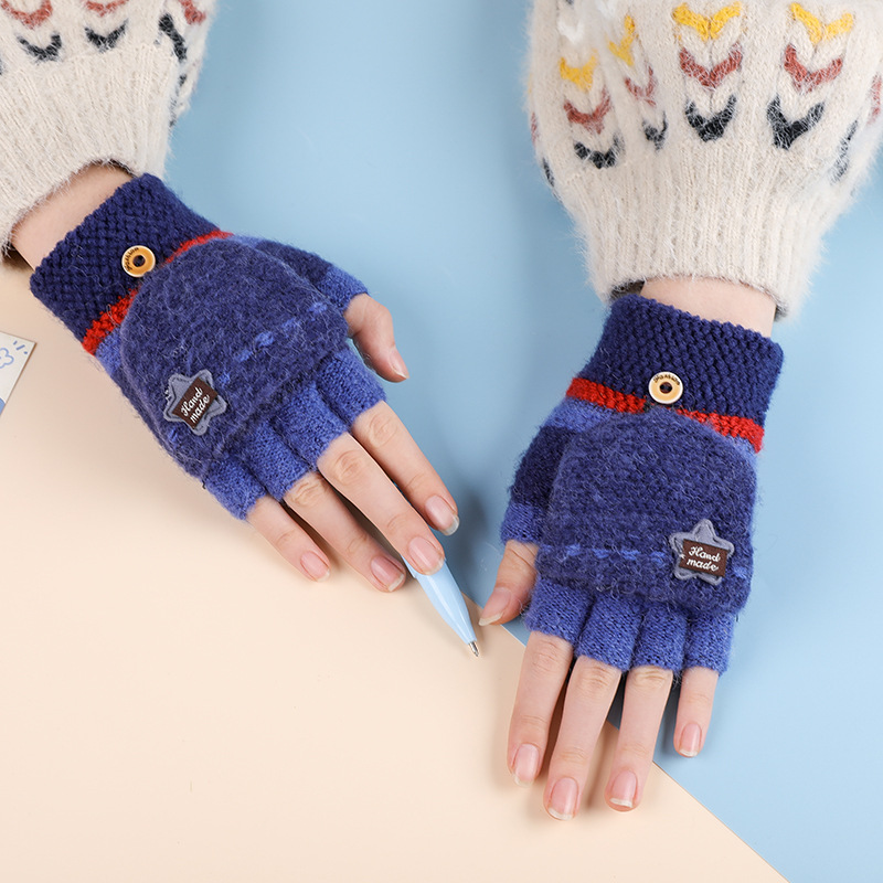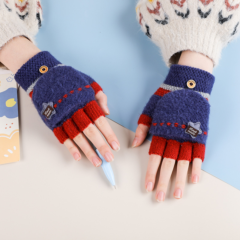 어린이 장갑 겨울 따뜻한 귀여운 만화 손가락 플립 온 반 손가락 양모 소년과 소녀와 학생을위한 니트 쓰기