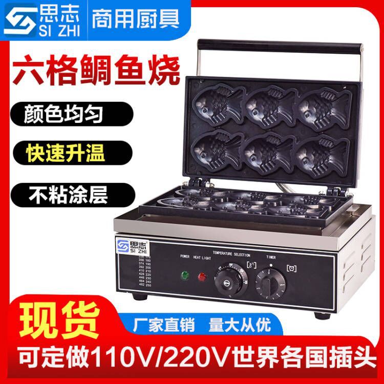 상업 여섯 작은 어묵 전자 기계 핫 도미 물고기 굽기 기계 파삭 파삭 한 작은 물고기 케이크 기계 대만 곡물 어묵 기계 한국식