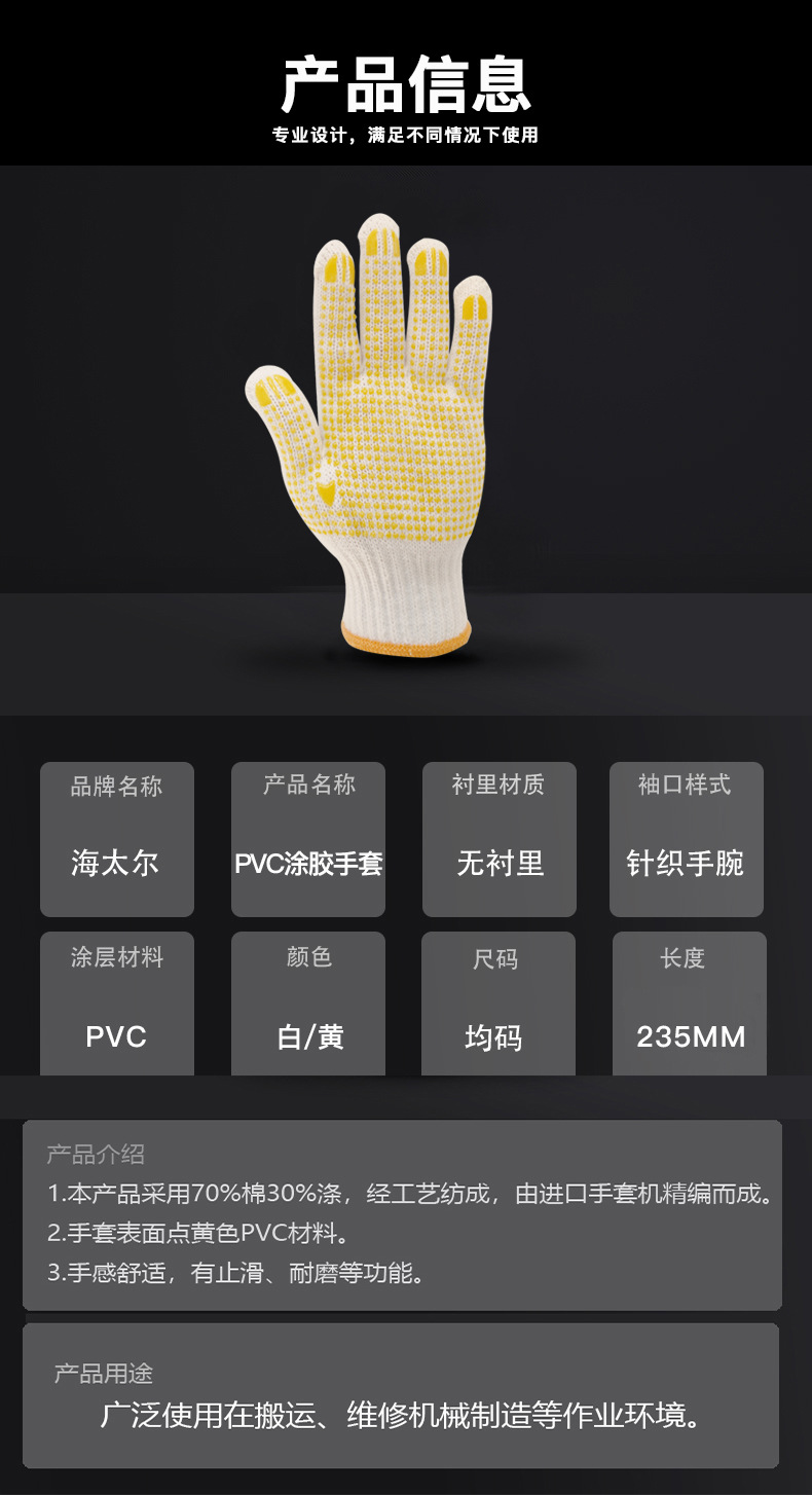 Haidel (HTR)0003 원사 도트 플라스틱 장갑 미끄럼 방지 마모 방지 통기성 취급 및 유지 보수 산업