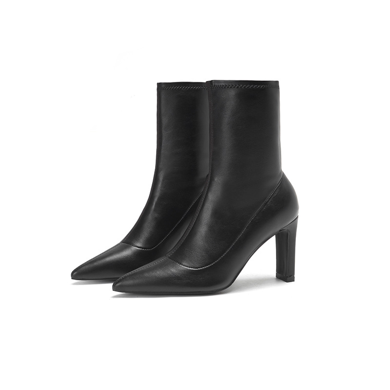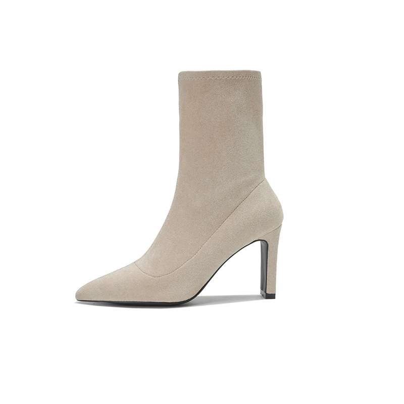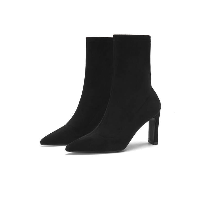 맞춤형 섹시한 뾰족한 발목 부츠 스웨이드 두꺼운 굽 하이힐 패션 부츠 한국 스타일 패션 여성용 싱글 부츠