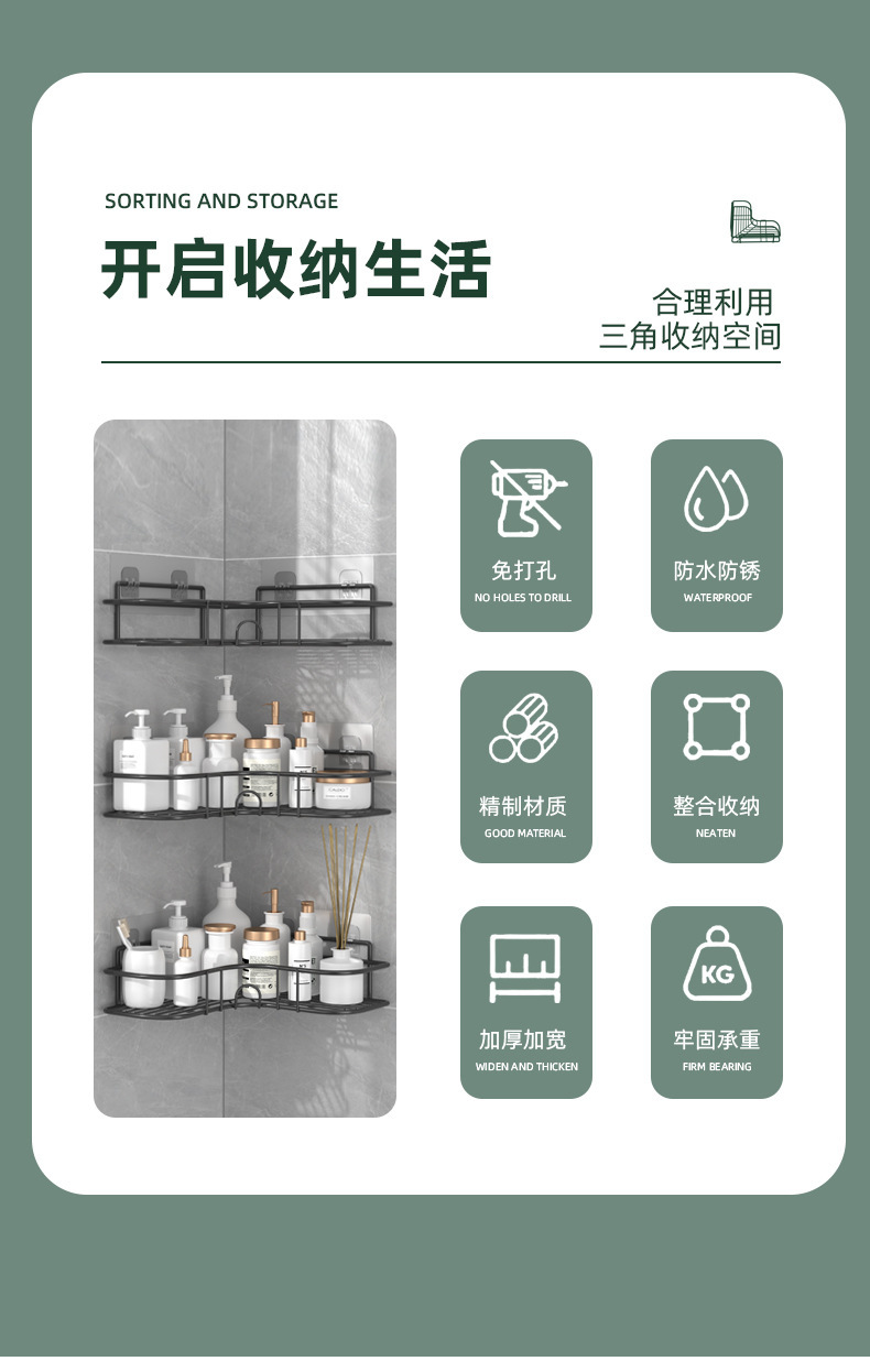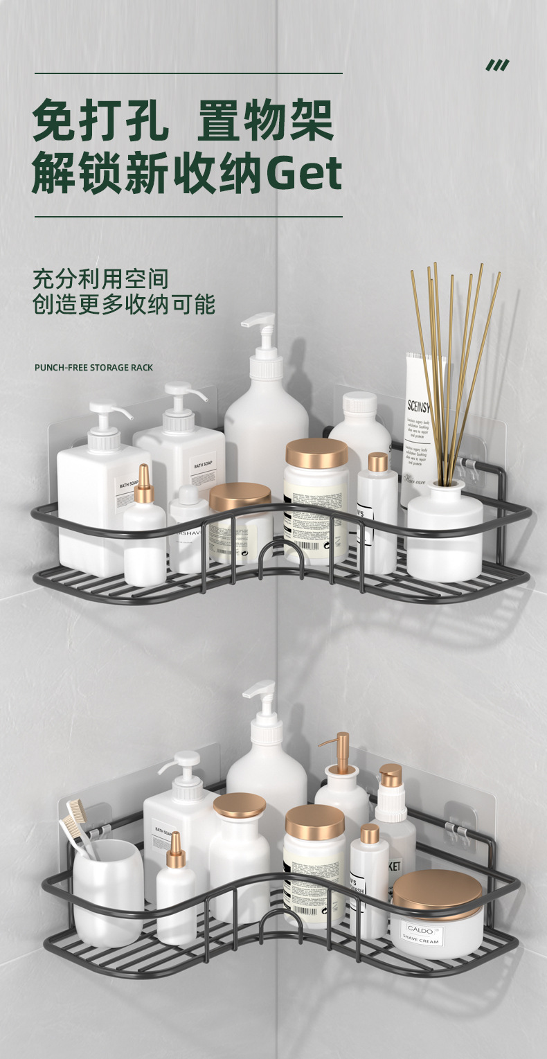 스테인리스 스틸 코너 욕실 선반 무타공 화장실 세면대 수납 선반 화장실 벽 삼각 선반