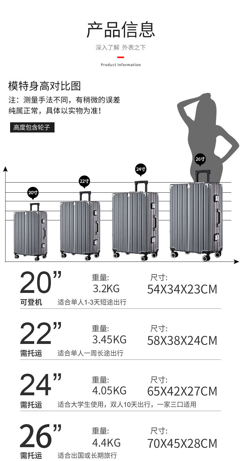 여행용 가방, 알루미늄 프레임, 바퀴 달린 가방, 회전식 바퀴, 남녀 학생용, 기내 반입 가능, 비밀번호 잠금, 미니멀하고 고급스러운 가방스토어 가기