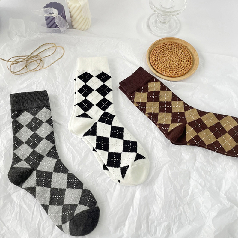 Ziyang 가을과 겨울 새로운 미드 튜브 여성 양말 레트로 양말 다이아몬드 격자 무늬 양말 한국 INS 유행 양말 모리 스타일 양말 JK 면 양말