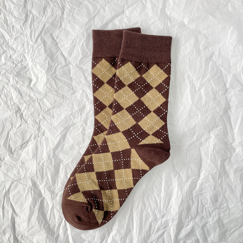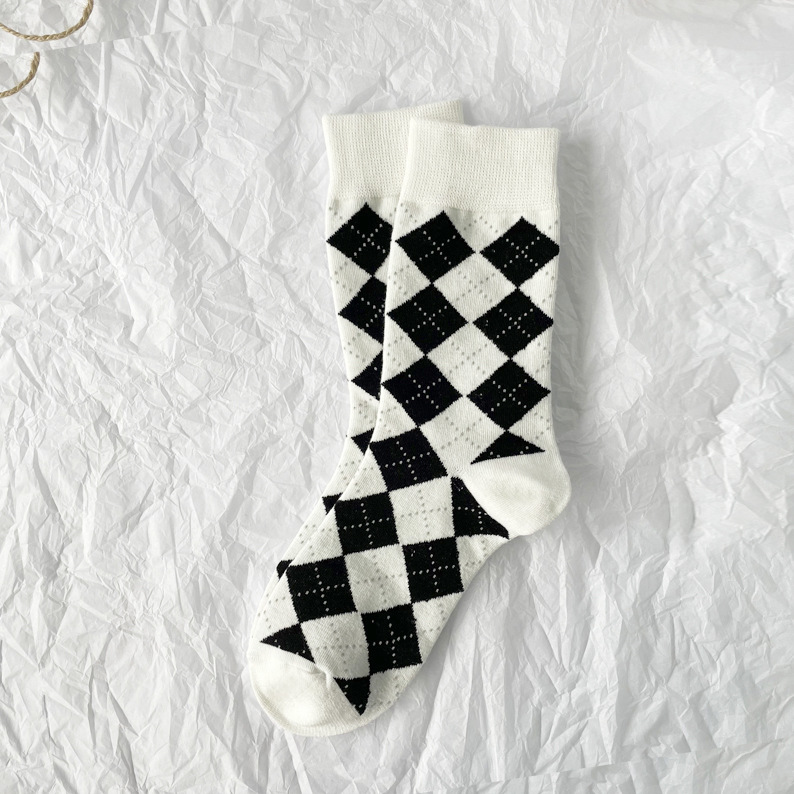 Ziyang 가을과 겨울 새로운 미드 튜브 여성 양말 레트로 양말 다이아몬드 격자 무늬 양말 한국 INS 유행 양말 모리 스타일 양말 JK 면 양말스토어 가기