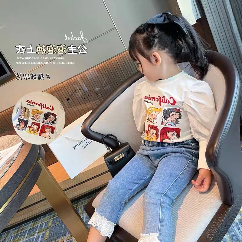 여자 새로운 스타일 서양 퍼프 슬리브 긴 소매 티셔츠 2021 봄과 가을 여성의 보물 한국 스타일 만화 겉옷 베이스 셔츠 Q2116