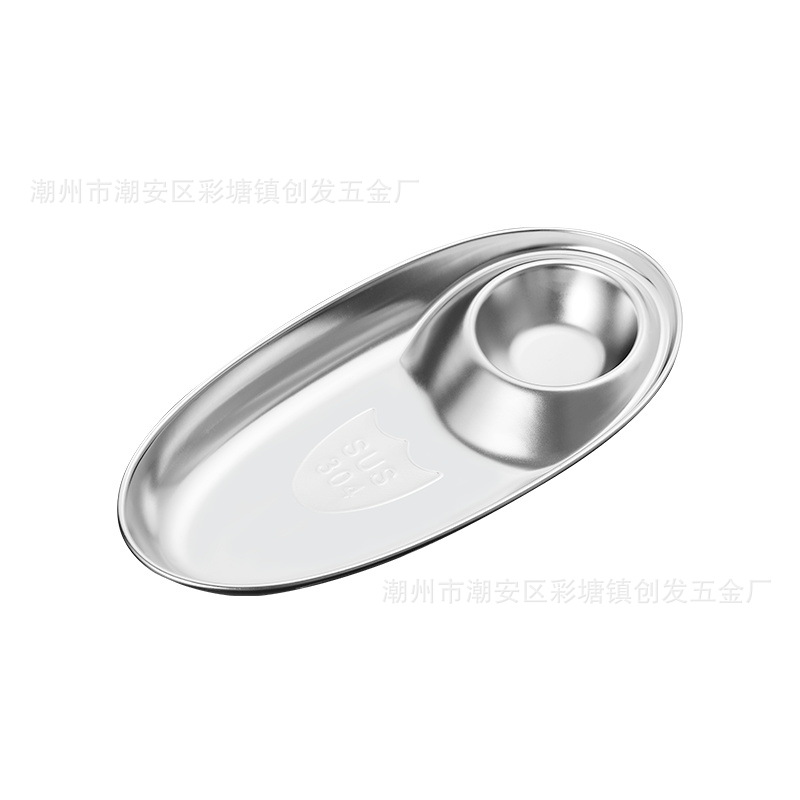 스테인레스 스틸 두꺼운 304 스낵 플레이트 프렌치 프라이 프라이드 치킨 플레이트 파티션 딥 바 만두 디저트 접시 딥 소스 플레이트