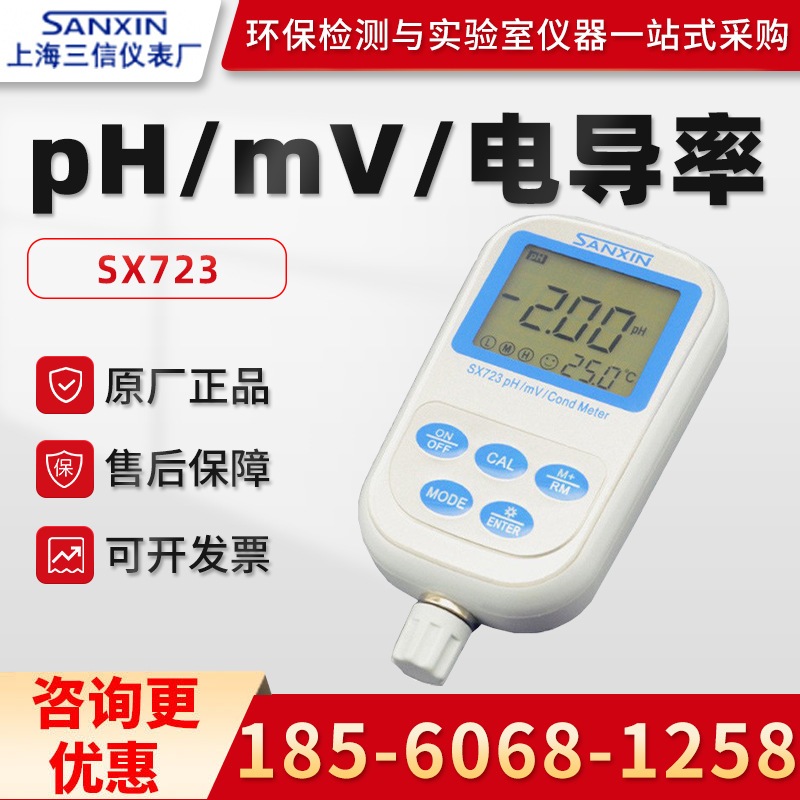 SX723型PH/ORP/电导率测量仪是先进的电子技术、传感器技术和软件设计的*结合。本仪器可用于高精度测量水溶液的pH、ORP、电导率、TDS、盐度、电阻率、溶解氧和温度等参数,是性价比优的便携式水质分析仪器。适用于工矿企业、电厂、水处理工程和环保等行业,尤其适合在野外和现场使用。