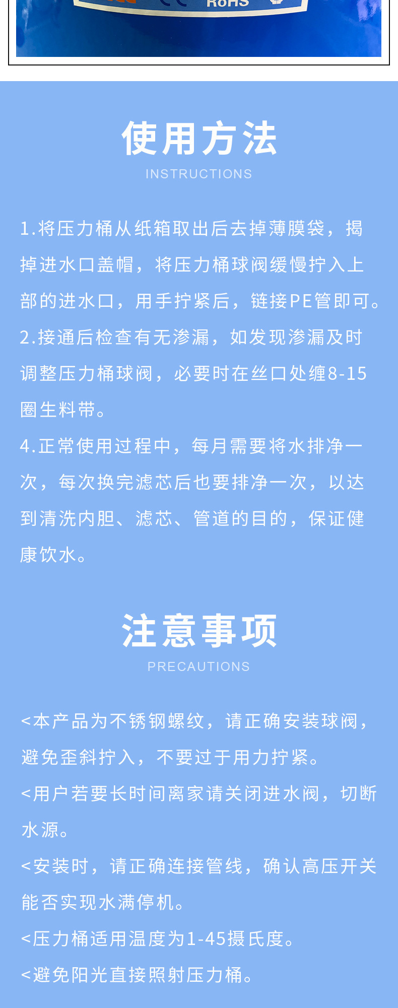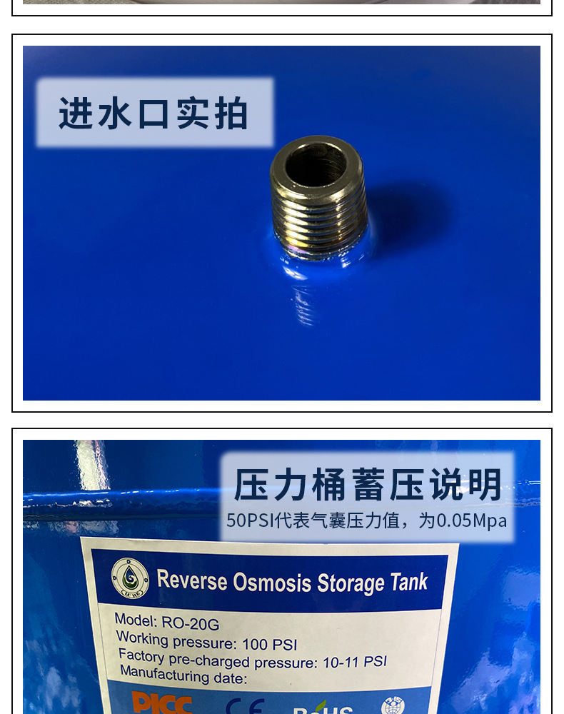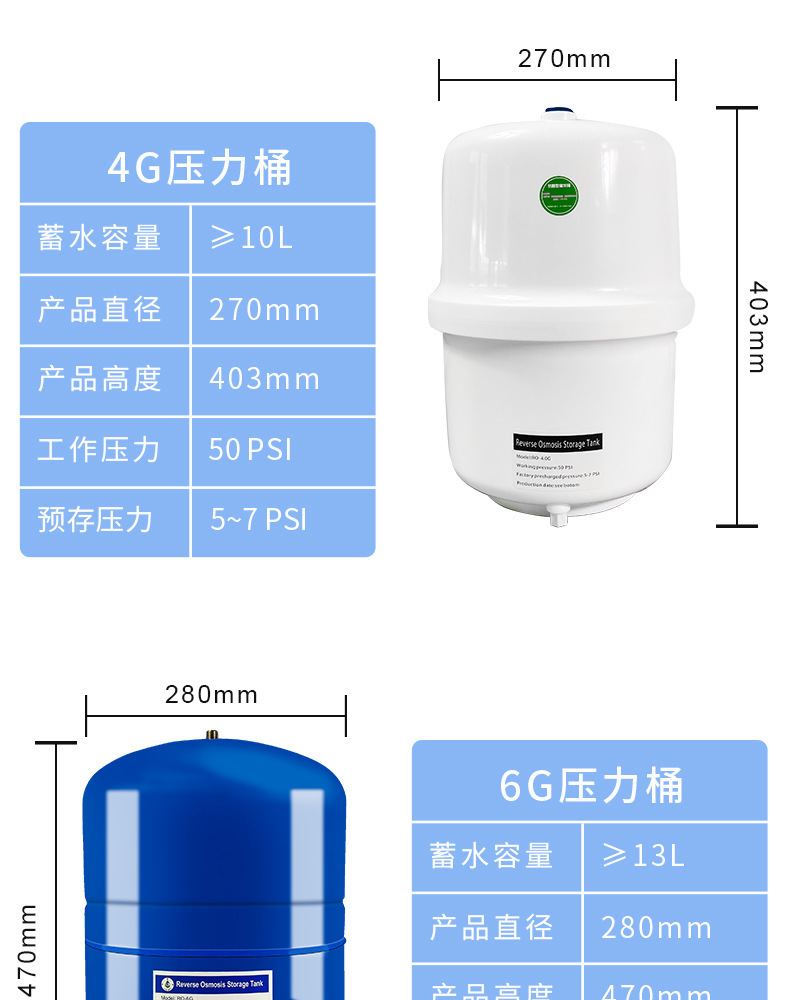 3.2G/4/6/11/20G 압력 배럴 가정용 직접 물 디스펜서 필터 역삼투 RO 정수기 물 저장 탱크스토어 가기