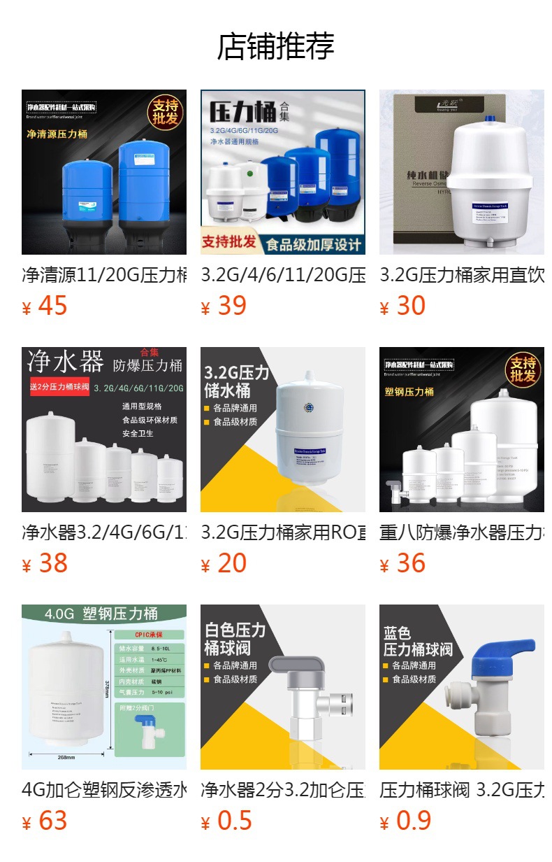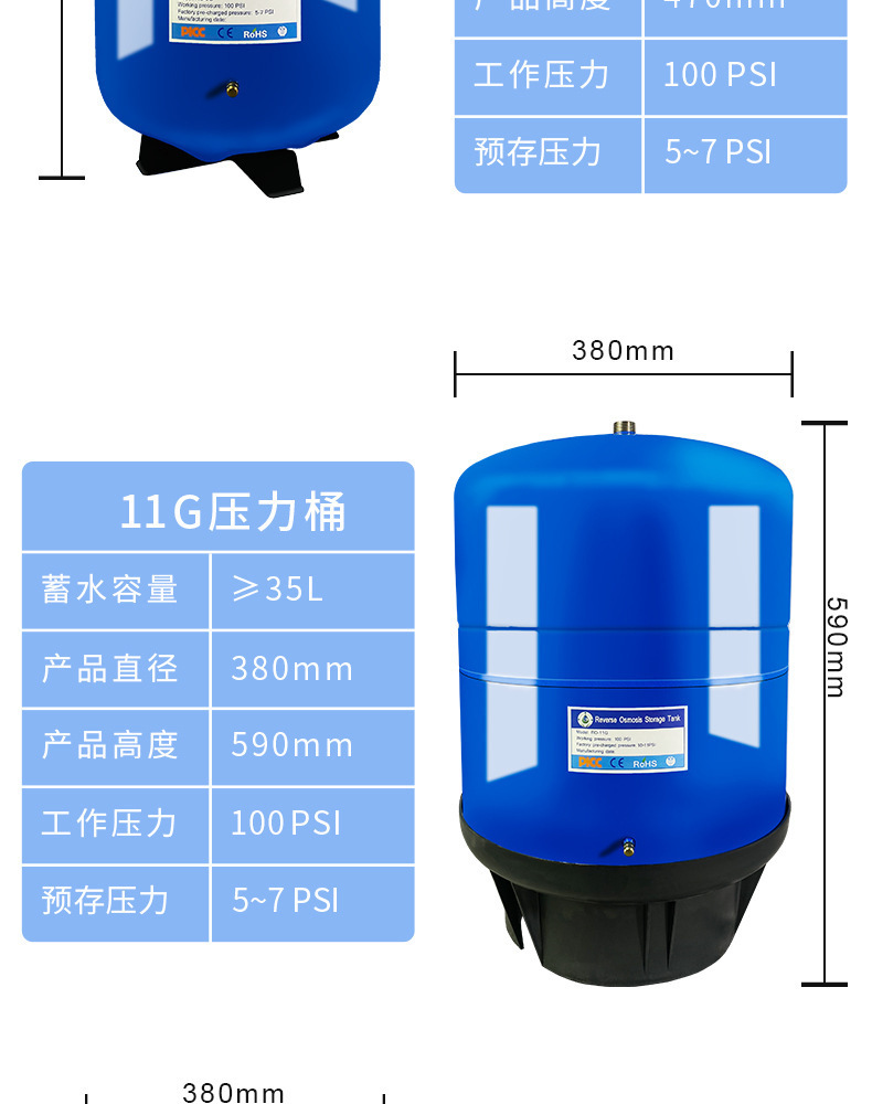 3.2G/4/6/11/20G 압력 배럴 가정용 직접 물 디스펜서 필터 역삼투 RO 정수기 물 저장 탱크