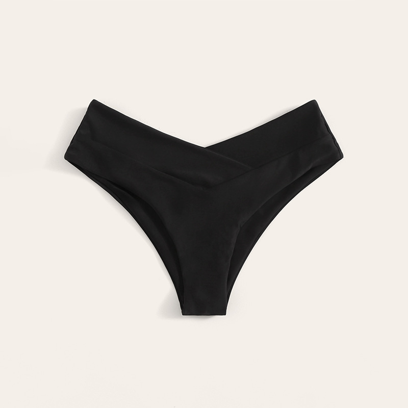 亚马逊欧美纯色绑带V领性感连体泳衣女夏紧身沙滩比基尼温泉泳装
