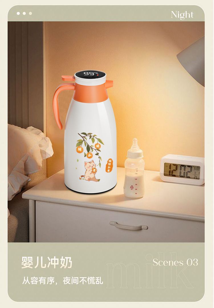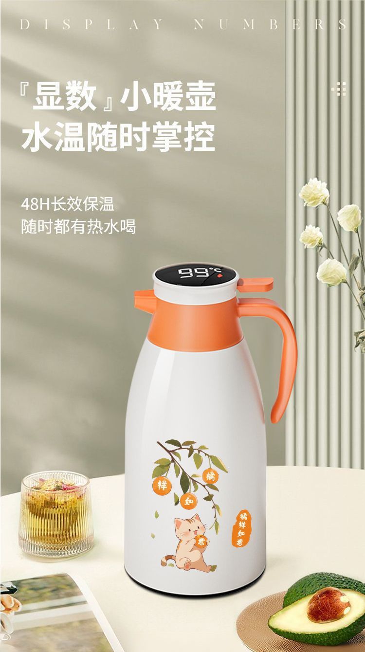 • 오렌지 2000ML 디지털 디스플레이 방진 보온병 주전자