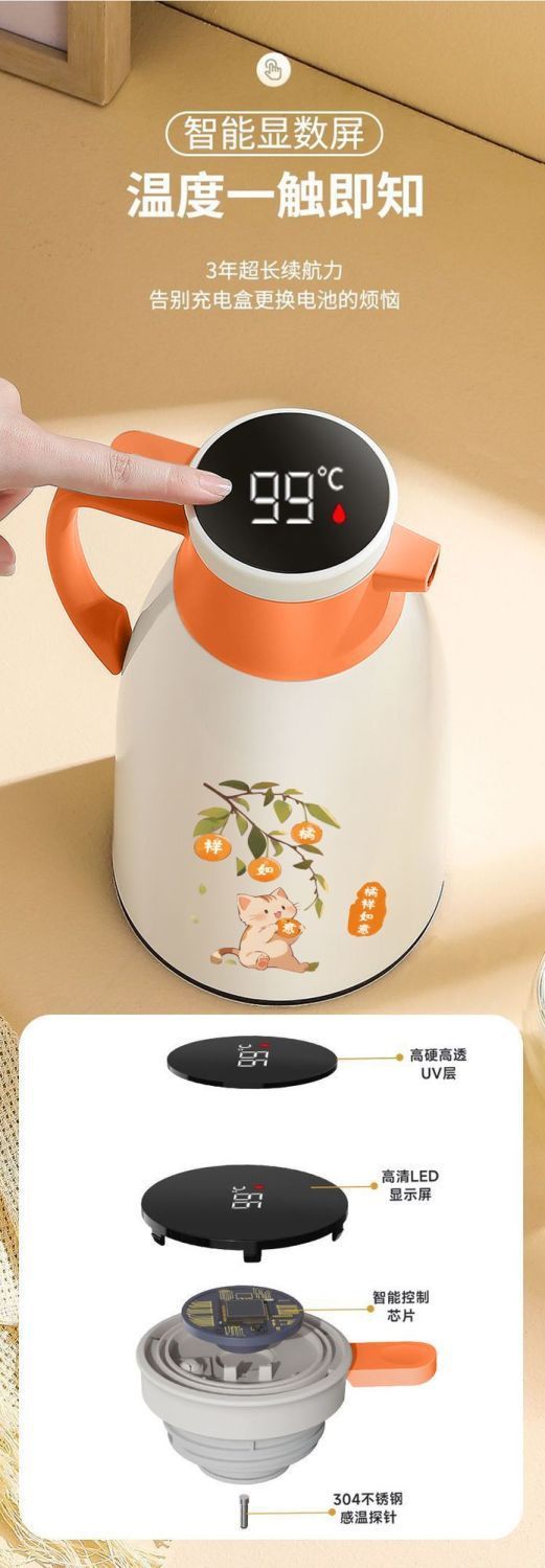 • 따뜻한 커피 색상 1.9 디지털 디스플레이 방진 보온 주전자