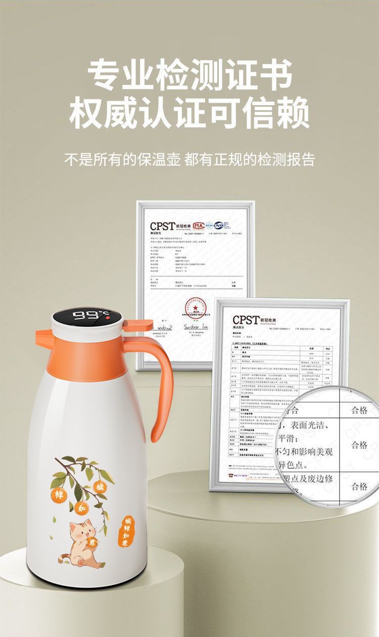 • 오렌지 1300ML 디지털 디스플레이 방진 보온병 주전자